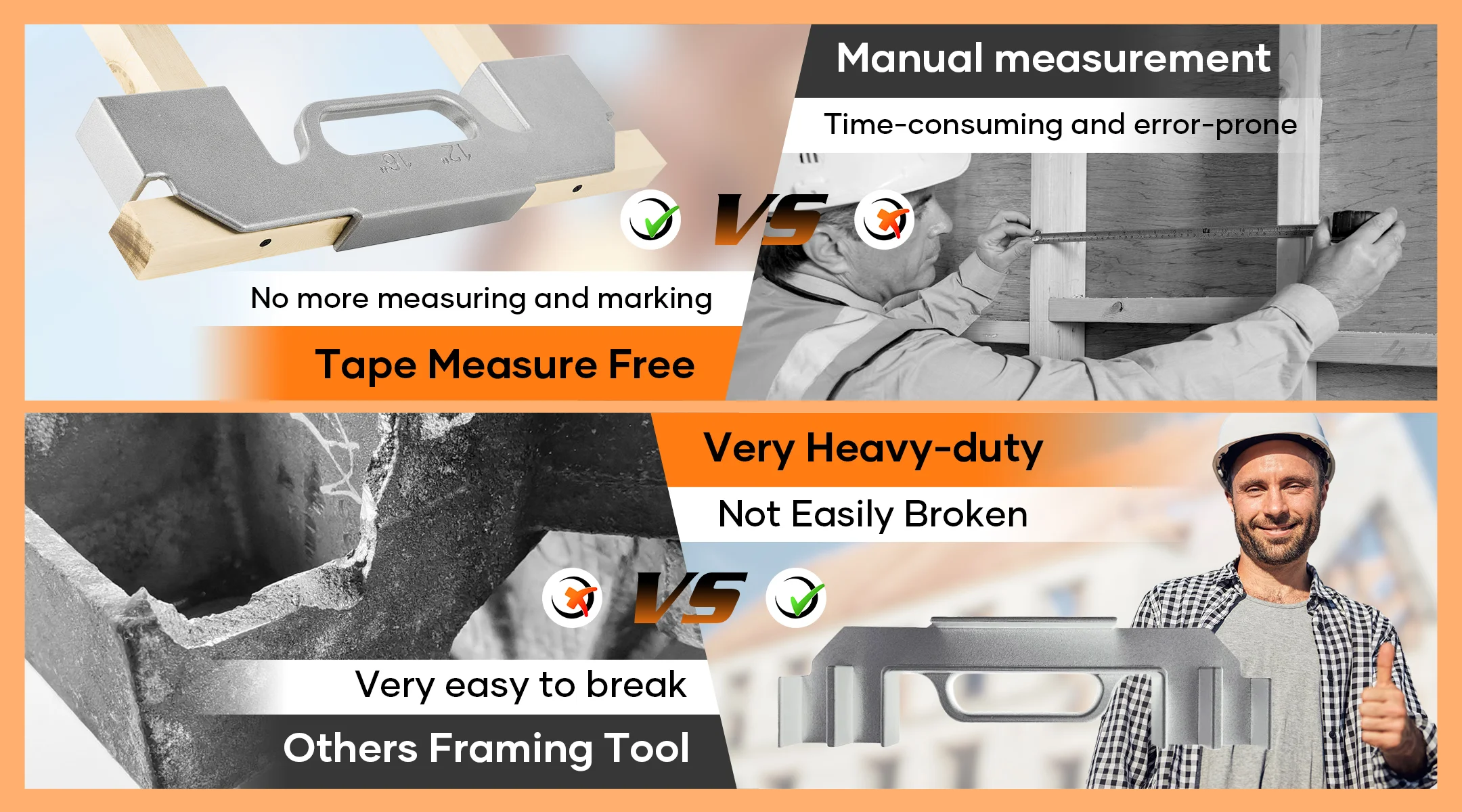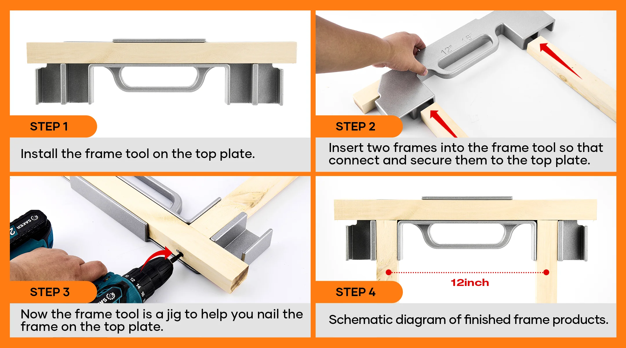 - Time-Saving Frame Spacing Tool: Keep the bolts in the correct positions while nailing, saving you a significant amount of time. This tool can increase your framing work speed by up to 50%.