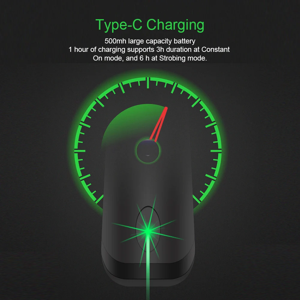 *4. 500mAh high capacity battery supports 3h(Constant On)/6h(Strobing) of battery life on a 1-hour full charge.