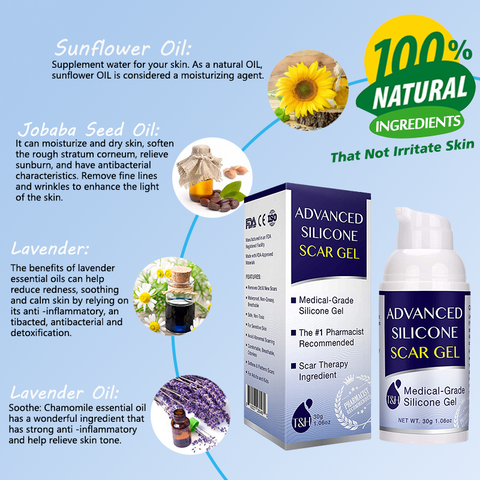 - MEDICAL GRADE SILICONE GEL to treat old and new scars from surgery, burns, acne, C-sections, and more